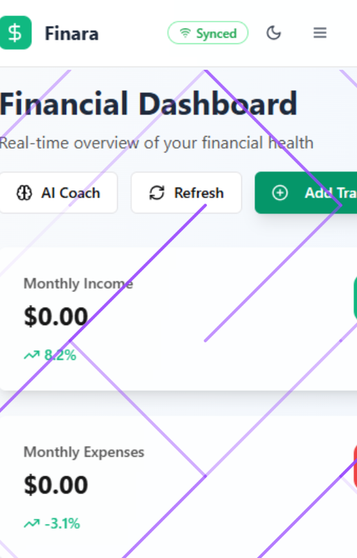 Finara Pro is your intelligent financial co-pilot, engineered to transform how you manage money. Track income and expenses with precision, establish meaningful savings goals, and monitor progress in real time. Our premium dashboard delivers actionable insights into your spending patterns, helping you identify opportunities to optimize your finances. Built for those who demand clarity and control, Finara Pro empowers you to make informed financial decisions and build lasting wealth with confidence.